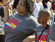 A mother and her son march in the 2013 Capital Pride parade.
