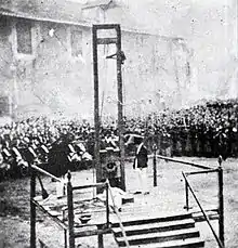 Some thirty years later, capital punishment was definitively abolished nationwide in the 1889 Penal Code with the almost unanimous approval of both Houses of Parliament under suggestion of Minister Giuseppe Zanardelli.[4] However executions in Italy had not been carried out since 1877, when King Umberto I granted a general pardon (royal decree of pardon of 18 January 1878). Ironically, as a result of this pardon, Giovanni Passannante could not be sentenced to death after he attempted to assassinate Umberto I in 1878. The death penalty was still present in military and colonial penal codes, being massively applied during the First World War (1915-1918) for acts of desertion, insubordination and "dishonorable behavior", even against innocent soldiers (practice of decimation ordered by the generals without any decision of the military court).