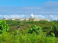 ![]() A view of the Capitol of Palau. The flag of Palau can be seen at the top of its dome. | |