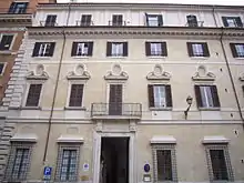 Related to the main families of the Roman nobility at the beginning of the sixteenth century with Bruto and Marcello, the family reached the height of its fame as part of the Capitoline nobility thanks to the gallantry and the profession of arms, both deeply rooted among its members as Papirio, Cencio and Camillo.[9][10][11] With Marcello's son Biagio, who – among others – participated to the battle of Lepanto on the orders of Marcantonio Colonna and could gain more than 100,000 scudi from his occupation as man-at-arms, the family reached the apogee of its wealth, buying the estates of Catino and Poggio Catino and building the palace which became its residence.[12] This was perhaps designed before 1593 by Giacomo Della Porta, and had its main facade along Piazza Campitelli.[13] In front of the palace lay the church of Santa Maria in Campitelli, where many of the Capizucchis are buried in the family's chapel, whose existence is attested since 1390.