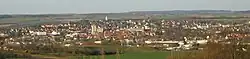 With a population of 24,374 (2019), the town is diverse. It is a quaint medieval place, and, among its ancient buildings, boasts a fine Evangelical church (German: Stiftskirche) containing carvings in cedar-wood from the 15th century and numerous interesting tombs and monuments; a Renaissance town hall; the building, now used as a library, which formerly belonged to a monastery, erected in 1034; and a palace, the former residence of the princes of Hohenlohe-Öhringen.[3]