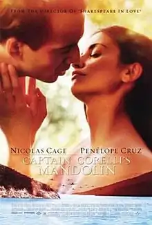 Captain Corelli's Mandolin is a 2001 war film directed by John Madden. It is based on the 1994 novel Captain Corelli's Mandolin by Louis de Bernières. The film pays homage to the thousands of Italian soldiers executed at the Massacre of the Acqui Division by German forces in Cephalonia in September 1943, and to the people of Cephalonia who were killed in the post-war earthquake. The novel's protagonists are portrayed by actors Nicolas Cage and Penélope Cruz.