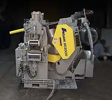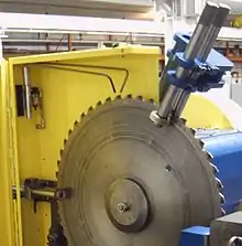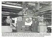 In 1976, the company Carbide Cutoff Inc. (CCI) in Rockford, IL developed a larger production carbide saw of this kind in order to be able to compete against the horizontal slide saw from Metalcut Inc. This machine successfully cut billets up to 8 inches (200 mm) in diameter.