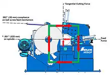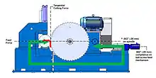 Saws with horizontal or tilted slides have an open loop force flow (fig.2) and maintain any lost motion and compliance of the feed system.[8]