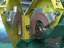 These are more expensive than conventional horizontal slide saws. They are most effectively used for cutting railroad rails, because the saw blade enters optimally into the rail profile.