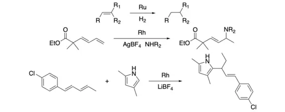 8. 1 2 3 Goldfogel, Matthew; Roberts, Courtney; Meek, Simon (2014). "Intermolecular Hydroamination of 1,3-Dienes Catalyzed by Bis(phosphine)carbodicarbene-Rhodium Complexes". Journal of the American Chemical Society. 136 (17): 6227–6230. doi:10.1021/ja502275w. PMID 24742315.