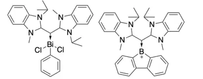 32. Walley, Jacob; Warring, Levi; Wang, Guocang; Dickie, Diane; Pan, Sudip; Frenking, Gernot; Gilliard Jr., Robert (2020). "Carbodicarbene Bismaalkene Cations: Unravelling the Complexities of Carbene versus Carbone in Heavy Pnictogen Chemistry". Angewandte Chemie International Edition. 60 (12): 6682–6690. doi:10.1002/anie.202014398. PMC 7986408. PMID 33290596.