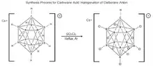 , refluxing under dry argon to fully chlorinate the molecule yielding carborane acid, but this has been shown to fully chlorinate only under select conditions.[20][17][21]