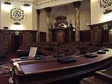 The first meeting of Cardiff County Borough Council took place at Cardiff Town Hall on Monday 8 April 1889, chaired by the Deputy Mayor (Mayor David Jones was in London on Parliamentary business). Five other Aldermen and 22 councillors were in attendance.[4] In his introductory remarks Deputy Mayor Lewis suggested (to laughter) that councillors should be paid for their duties. Amongst items discussed were a new train station for Roath, a proposed weir for the River Taff and a report compiled by the town clerk proposing extensions to the county borough's boundaries.[4]