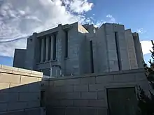 The Cardston Alberta Temple (formerly the Alberta Temple) is the eighth constructed and sixth of the still-operating temples of the Church of Jesus Christ of Latter-day Saints. Located in Cardston, Alberta, it is the church's oldest temple outside the United States. It is one of eight temples that does not have an angel Moroni statue, and one of six without spires, similar to Solomon's Temple.[2] It is also one of only two temples the church built in the shape of a cross, the other being the Laie Hawaii Temple.