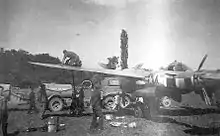 ![]() P-47 Thunderbolts, including (2N-U, serial number 42-25904) nicknamed "Lethal Liz II", of the 50th Fighter Group, with cows at Carentan Airfield (A-10), France, Summer 1944 | |||||||