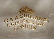 Carlo Giuliano (18311895) was a goldsmith and jeweller operating in London from 1860. He started work in Naples for Alessandro Castellani and was sent to London to establish a branch of the Casa Castellani. He left Castellani's employ in the early 1860s and in turn worked for Robert Phillips, Harry Emanuel, Hunt & Roskell, and Hancocks & Co - all leading London jewellers. In 1875, he set out on his own, starting a retail outlet at 115 Piccadilly, and specialising in Renaissance-style design.[1]