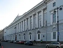 - The façade of the Russian National Library, which faces Alexandrinskaya Square.