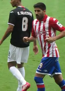 Carmona alternated between the top flight and the second tier the following years, representing FC Barcelona B[5] and Sporting de Gijón.[6] He scored eight goals in 25 games in the 2016–17 campaign while with the latter side, not being able however to prevent relegation; additionally, he renewed his contract until 2021.[7]