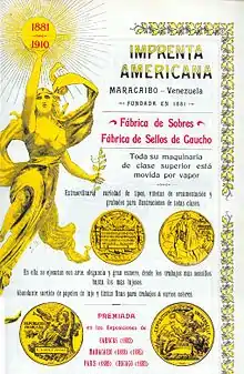 The López publications were published in Maracaibo's Imprenta Americana, one of the most modern typographic workshops on the continent at the time. In printing workshops López Bustamante learned printing and binding techniques and everything related to the handling of activities that were done in the famous publishing house. This occurred while he was studying in high school, accompanied by the learning of various languages, instructed by private tutors who came to the residence of Don Eduardo López Rivas for tutoring for his children.[8]