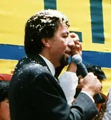Carlos Palenque (28 June 1944, La Paz – 8 March 1997)[1] was a Bolivian musician, singer and politician known to his fans as the Compadre. He died of a heart attack.