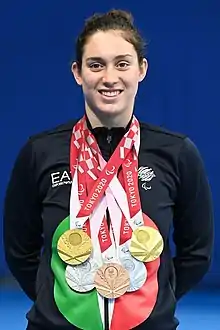Carlotta Gilli (born 13 January 2001) is a partially sighted Italian Paralympic swimmer who competes in international level events. She holds twelve world records in her class.[2][3] She won five medals at the 2020 Summer Paralympics.[4]