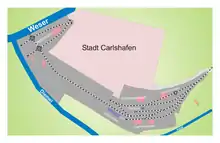 On 6 August 1846 the body responsible for building the line was named the Elector Frederick William Northern Railway Corporation (Kurfürst-Friedrich-Wilhelms-Nordbahn Aktiengesellschaft). The line was named Carlsbahn after Bad Karlshafen, which was called Carlshafen until 1935. Its name means "Charles' Port" and it was named after Charles I (Hesse's ruler from 1670 to 1730) on its foundations by French Huguenots in 1699.