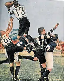 Early in the fourth quarter of the match, while Collingwood was leading, a huge brawl broke out involving at least thirty players and officials from both clubs; the fight was described by experienced umpire Jack Elder as the worst he saw in his VFL career. Collingwood held on to win by 14 points, but four players were reported for starting the big fight and as a result were heavily suspended.[8]