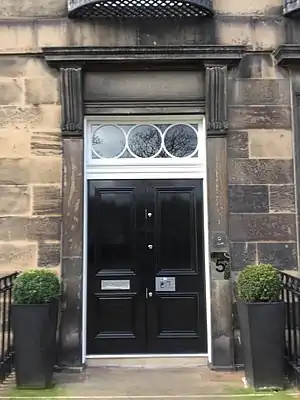 Following the social changes after the First World War, up to half of the houses were turned into small private hotels, which in some cases lasted down to this century. Furthermore, from the 1930s, there were offices, including the Commissioner for Special Areas, followed by the Royal Observer Corps and the Scottish Home Office in numbers 13 and 14.[7] Towards the end of the 20th century, the South Edinburgh School of Nursing was at 15, 16, and 17 (still indicated by a marble step with Carlton House in black letters[8]) and the Ingleby Gallery of modern art was at number 6.