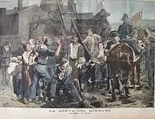 During the 19th century industrial revolution the miners organized themselves and fought for shorter working hours, higher wages, improved safety and social insurance.[15] A strike in 1883 failed, but when the law of 1884 made it legal the Carmaux workers formed a union. Marcelle Auclair wrote in 1954 that towards the end of the 19th century the Carmaux workers were starting to say, "Without Carmaux, where would the Solages clan be?" On 28 November 1886 the deputy Charles Emile Wickersheimer (1849–1915) attacked the 1810 mining law, saying "The State has no right to commit future generations; to say that mining property is property like any other is an obvious mistake." On 19 November 1889 several left-wing deputies proposed nationalization, and demands for nationalization or regulation grew as the number of miners strikes grew.[7]