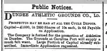 Newspaper advertisement for the Dundee Athletic Grounds Company