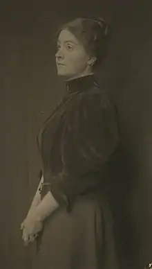 Peart was born in Rosemont, Pennsylvania,[lower-alpha 1] into a middle-class family. She was the only child of John Peart and Martha Ann Herr Peart (nee Brenneman). Through her mother, Peart was the half-cousin of American artist and illustrator N. C. Wyeth.[1] Martha was also a direct descendant of Hans Herr, the first ordained Mennonite bishop to emigrate to the American colonies in 1710. This lineage caused the family much pride, as Caroline and her mother often attended Herr family reunions, and Martha served as Vice President of the Hans Herr Memorial Association, when it was established in 1895.[2] Before marrying Martha in 1867, John Peart had fought during the Civil War for the Union Army, serving as sergeant major in the 195th Regiment of the Pennsylvania Volunteer Infantry.[3] After the war, he went into the lumber business in Columbia, which started to boom around 1876-77 and caused the family to move to Philadelphia where they lived on Logan Square at 1901 Vine Street.[4]
