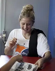 - ↑ "New Jersey Native Signs with Sky Blue FC", Our Sports Central, December 6, 2010. Accessed August 13, 2023. "After securing four Most Valuable Player Awards and becoming the all-time leading scorer at Toms River High School East, Blank continued her soccer career at West Virginia University."
