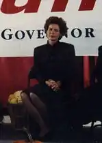 When her husband was reelected as governor in 1993, Hunt used her position as first lady to focus on education, early childhood health, volunteerism, and women's health issues.[1] She volunteered weekly in local soup kitchens, hosted volunteering events at the Executive Mansion, and volunteered as a tutor and mentor at Lucille Hunter Elementary School and Fred J. Carnage Middle School in Raleigh.[1] As a supporter of Smart Start, a statewide school-readiness initiative started by her husband, Hunt traveled to counties throughout North Carolina to visit daycare centers and preschools to meet with care providers and early childhood educators.[1] Because of her efforts to improve early childhood education resources, she was appointed as the honorary chair of the North Carolina Partnership for Children.[1] In 1993 she had an official portrait of her predecessor, First Lady Dottie Martin, removed from the Executive Mansion and sent to the North Carolina Museum of Art.[5] She replaced the portrait with another of former First Lady Jeanelle C. Moore.[5]