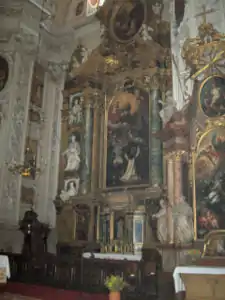 - The apse surrounding the main altar of the Dominican church in Vienna (1675). These are decorated with two historic paintings of Christian victories: 1) the Battle of Muret (1213) and 2) the Battle of Lepanto (1571). Tencalla also added paintings to the walls of the side chapels.