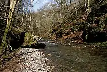 The Carron Water (Scottish Gaelic: Carrann) is a tributary of the River Nith in southwest Scotland. It rises in the Dalveen Pass in the Lowther Hills as its headwater streams, the Dinabid Linn, Dalveen Lane and Lavern Burn join to flow southwards, to the west of the village of Durisdeer, to meet the Nith at Carronbridge.[1]