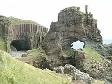 Carsaig Arches are natural arch cliff formations on the Ross of Mull in the south of the Isle of Mull, on the west coast of Scotland. They are situated below Malcolm's Point,[1] at the base of the Rudha Fhaoilean cliffs.[2] To the east are Carsaig Bay,[3] and Eas na Dabhaich.