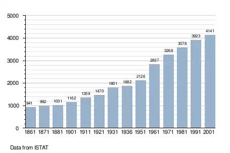 - ↑ "Popolazione Residente al 1° Gennaio 2018". Italian National Institute of Statistics. Retrieved 16 March 2019.