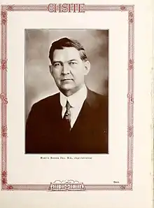 In 1915, the Chsite yearbook premiered.[7] In 1919, students organized a student council, a general athletic association, and The Echo campus newspaper.[8][9] In 1921, a marching band was formed, and school colors of olive green and white were selected, along with the white rose as the school flower.[10] The school motto was "service".[10]