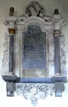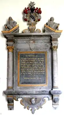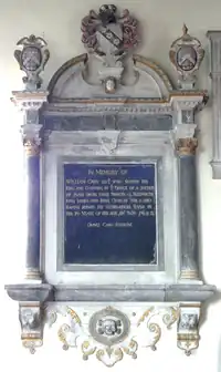 - ↑ Prince, John, (1643–1723) The Worthies of Devon, 1810 edition, London, p.190, states it was erected by his second son William Cary (c. 1661 – 1710), apparently incorrect on the basis of the armorials