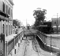 When the Buenos Aires Central Station was destroyed by fire in February 1897, the BA&EP moved its terminus to Venezuela station (placed on the junction of Paseo Colón and Venezuela) during a brief period of time before moving again to Casa Amarilla.[3] In 1898 the BA&E was acquired by rival company Buenos Aires Great Southern Railway that took over the line. The BAGSR closed Casa Amarilla station to passengers in 1910,[4] although the station continued operating freight services.