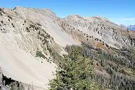 Cascade Mountain[2] is located in central Utah (Utah County just east of Provo and Orem Utah). With an elevation of 10,908 feet (3,325 m), it is not as high as its neighbors, to the north Mount Timpanogos (11,752 feet [3,582 m]) and Provo Peak (11,068 feet [3,374 m]) to the south, but it is one of the major peaks of the Wasatch Range.