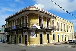 The house soon became locally known as the "House of the Twelve Doors" (La Casa de las Doce Puertas) and, along with the Franceschi Antongiorgi House and the town parish church, it became a historic and architectural landmark of the town. The building has functioned as a private residence, public and private offices and restaurants throughout its existence. It was greatly affected by the 2020 earthquake and has been under constant repair ever since.[5] The structure along with numerous others have been declared endangered in the earthquake aftermath by the municipal government.[6] In 2023 the historic center of Yauco was declared a historic district by the Puerto Rico Planning Board and the Institute of Puerto Rican Culture,[7] with 222 structures including the Cesari Manor House being included in this designation.[8][9]