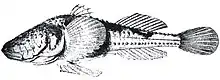 The Caspian stellate tadpole-goby (Benthophilus leobergius),[2] also known as the starry goby,[3] is a species of gobiid fish endemic to the Caspian Sea basin. It is widespread along all coasts of the Caspian Sea with exception of the central-eastern, and in the lowest part of the Volga River. In the southern part of the basin, it is mentioned near the Ogurja Ada, in the Gorgansky Bay, and in the Sefīd-Rūd River.[4] This species can reach a length of 10 centimetres (3.9 in) SL.[2]