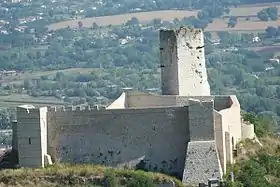 Cassino's roots lie in the settlement of Casinum, the last city of the Latins,[5] of Umbrian[6] or Venetic[7] or Oscan origin,[8][9] sited atop the hill of Cassino near Monte Cairo, five kilometres to the north. Casinum passed under the control of the Volscians first and then the Samnites,[10][11][12] Eventually Sabini (a Volsci branch and Umbrian/Venetic origins)[13] were defeated by the Romans[14] that gained control of Casinum and its territory (ager casinas),[15] establishing a fortified Latin colony there in 312 BC, Interamna Lirenas.[16]