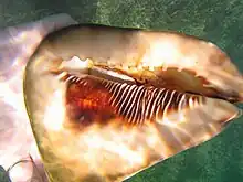 Cassis tuberosa, the king helmet, is a species of very large sea snail with a solid, heavy shell, a marine gastropod mollusc in the family Cassidae, the helmet shells and their allies.[1]