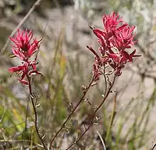 Castilleja linariifolia is a perennial plant, native to the United States and is the state flower of Wyoming. It has a number of common names including Wyoming Indian paintbrush, narrow-leaved Indian paintbrush, desert paintbrush, Wyoming desert paintbrush, Wyoming paintbrush, linaria-leaved Indian Paintbrush, and Indian paintbrush.[2]