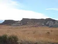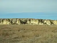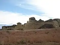 Castle Rock was a landmark on the Butterfield Overland Despatch route (Overland Trail). The chalk was deposited in the area by an ancient inland sea.[2] The formation was carved by the weathering of the chalk by wind and water. It received its name because it is said to look like a castle rising above the prairie.