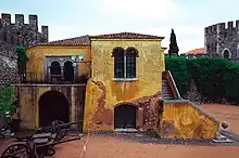 The Praça de Armas (place-of-arms) is accessible from these gates which links to the other wall fortifications, between corbels, and the other open to the north.[1] In the interior, addorsed to the north and eastern walls, is the two-storey Casa do Governador (Governor's Residence). The residence has a first-floor chimney with entrance torn by arched openings, one that provides access to barbican to the north, that includes second-storey windows.[1]