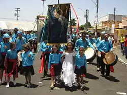 The story of the , Catalão's popular festival began in 1820, when semi-free slaves arrived in the Vila of Catalão to work in the coffee plantations. The slaves brought with them their customs, one of which was the cult of Our Lady of the Rosary. Her commemoration included a mixture of Afro and Catholic rites. Now these dances, with strong influences from the Congo and Moçambique, are celebrated in Catalão in the largest festival of Congadas in Brazil.