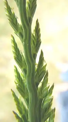 Catapodium marinum, the sea fern grass, is a species of annual herb in the family Poaceae (True grasses). They have a self-supporting growth form and simple, broad leaves. Individuals can grow to 22 cm tall.[1][2]