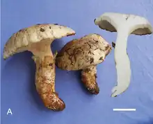 Catathelasma is a genus of fungi in the family Biannulariaceae.[1] Basidiocarps (fruit bodies) are agaricoid, with a conspicuous veil (leaving a double ring on the stem), adnate to decurrent lamellae, and amyloid basidiospores. The genus is separated on DNA characteristics as well as morphology. Species are known from North America, Europe, and Asia and are ectomycorrhizal, forming an association with the living roots of trees.[1][2]
