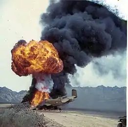 Catch-22 is renowned for its role in saving the B-25 Mitchell aircraft from possible extinction.[11] The film's budget accommodated 17 flyable B-25 Mitchells, and one hulk was acquired in Mexico, and flown with landing gear down to the Guaymas, Sonora, Mexico filming location.[4] The aircraft was burned and destroyed in the crash landing scene. The wreck was then buried in the ground by the runway, where it remains.[12]