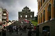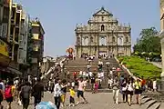 The Ruins of Saint Paul's (Chinese: 大三巴牌坊; Portuguese: Ruínas de São Paulo) are the ruins of a 17th-century Catholic religious complex in Santo António, Macau, China. They include what was originally St. Paul's College and the Church of St. Paul (Igreja de São Paulo) also known as "Mater Dei", a 17th-century Portuguese church dedicated to Saint Paul the Apostle. Today, the ruins are one of Macau's best known landmarks and one of the Seven Wonders of Portuguese Origin in the World. In 2005, they were officially listed as part of the Historic Centre of Macau, a UNESCO World Heritage Site.
