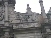 The façade is shaped like a retable and themed around the Assumption of Mary.[2]: 122 Likely influenced by Japanese Christian craftsmen who worked on it, the ruins of St. Paul's include carvings with heterodox images that draw from Asian traditions, including Mary stepping on a seven-headed hydra, described in accompanying Chinese characters as "Holy Mother tramples the heads of the dragon".[2]: 122 The base of the structure has six Chinese guardian lions carved from stone.[2]: 122